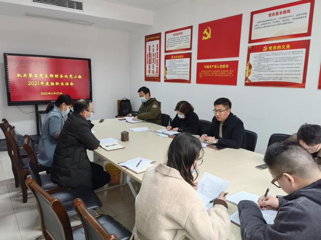 (本网讯 方波琳)2月25日下午,机关分党委第五党支部财务党小组在财务处会议室开展了2021年度组织生活会,会议由组织委员王靖国主持,财务处党小组全体党员参加会议。